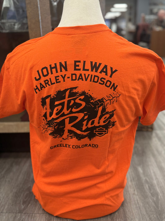 John Elway Harley Davidson Men's Orange Short Sleeve T-Shirt 40298674