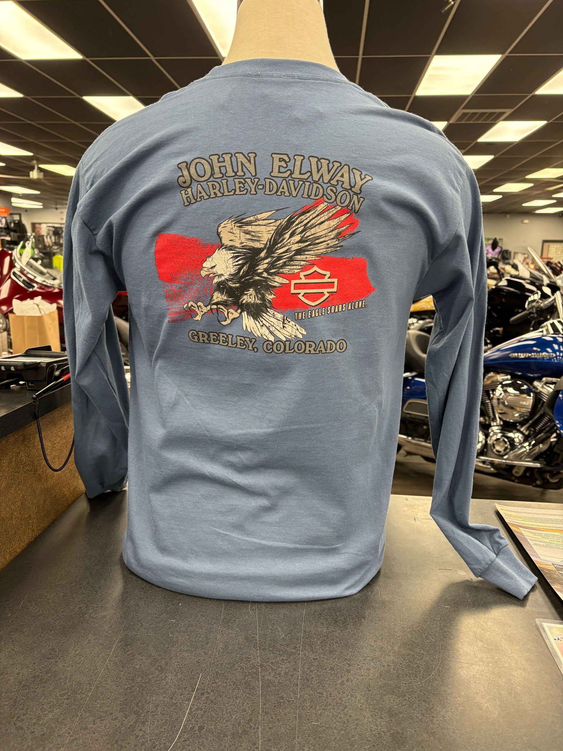 Long Sleeve Blue John Elway H-D Shirt
